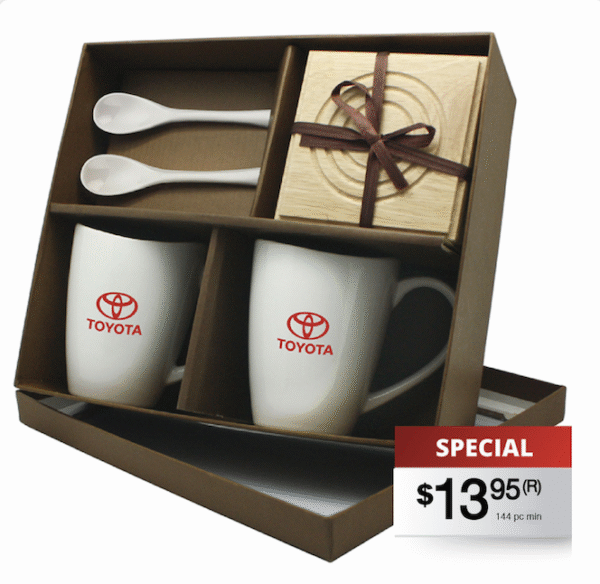 Ideal gift set for tea or coffee lovers. Includes two 8 oz ceramic coffee mugs, two wooden coaster and two ceramic spoons for mixing. All pieces tastefully packaged in a kraft gift box.