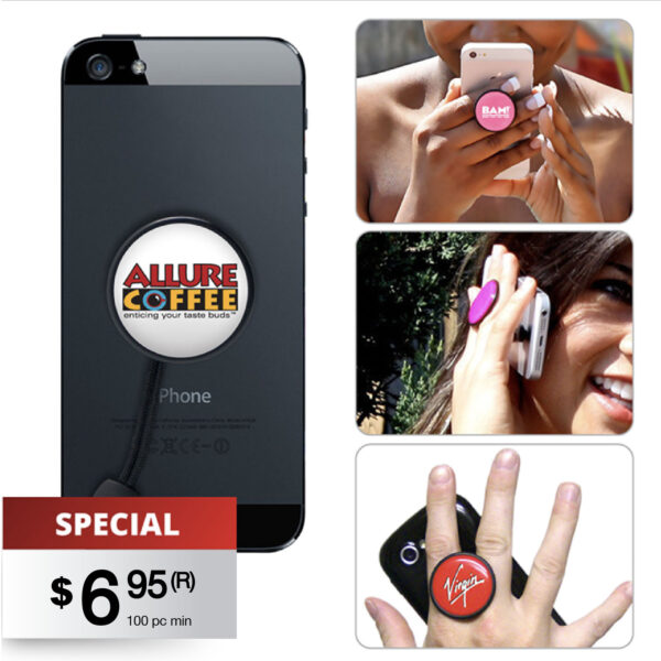 HANDABLE is the newest, one-of-a-kind accessory designed for use with any Smartphone, Tablet or E-Reader. HANDABLE is the perfect way to hold your electronic devices securely and comfortably and it keeps them from accidentally dropping ever again. It also allows the user to rotate their gadget/phone at 360 degrees, to hold it portrait or landscape. It is fully adjustable, it fits any size hand, child or an adult. It is retractable and low profile, so it tucks away neatly when not in use. Best of all, it is a perfect fit for the promotional products industry as it offers a large bold imprint area that's protected with an epoxy dome coating. With cell phones being a staple with every consumer, HANDABLE captures a large audience and is right for every promotion. Product Size: 1 3/8"d x 1/4"w Imprint Area: 1.24"d