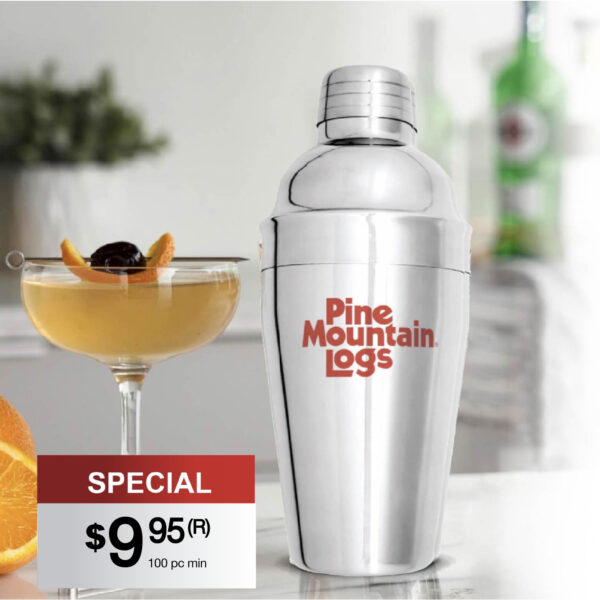 17 oz. (500 ml) Capacity. This highly polished Stainless Steel Cocktail Shaker is essential for any bar. Comes complete with a strainer and a leak proof lid.