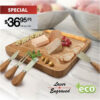 13" x 13" Serving Tray/ cutting board. Naturally durable, eco-friendly bamboo construction. Comes with four durable cheese tools. Unique compartment included for your cheese tools.